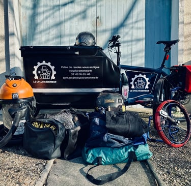 Depuis juillet, j’ai déjà parcouru plus de 700 km à vélo pour assurer l’entretien des cheminées, poêles à bois et à pellets. Mon mode de déplacement n’altère en rien la qualité du service : mon vélo cargo est conçu pour transporter tout le matériel nécessaire à un ramonage efficace et sécurisé.